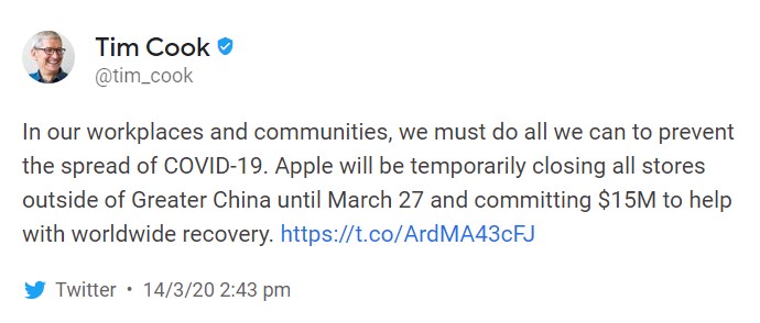 In a surprising reversal, Apple has announced that the temporary closure of all its stores outside of Greater China to prevent the spread of COVID-19. It’s interesting in that Apple has just re-opened its China stores.